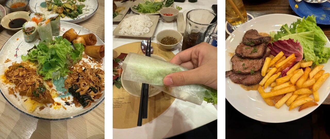 Ngoài triển lãm, tôi may mắn được khám phá những địa điểm đẹp của Việt Nam, mỗi nơi đều có nét quyến rũ riêng. Thành phố Hồ Chí Minh là thiên đường của ẩm thực Việt Nam, nơi tôi được nếm thử các món ăn đậm chất Việt Nam, bao gồm Phở (phở bò), Bánh Mì (bánh mì baguette Việt Nam) và chả giò.