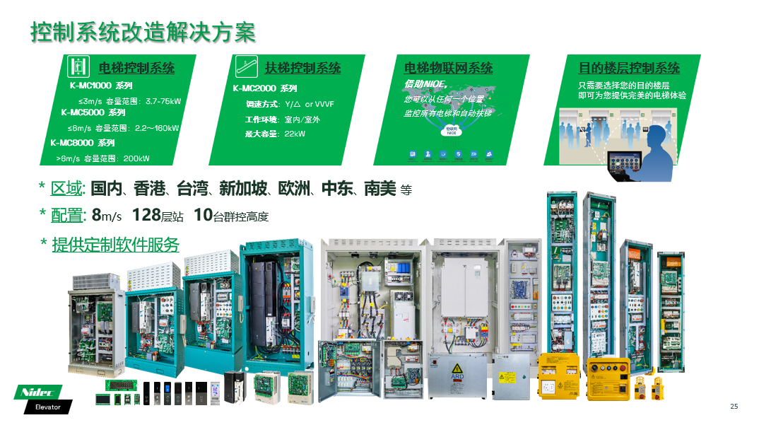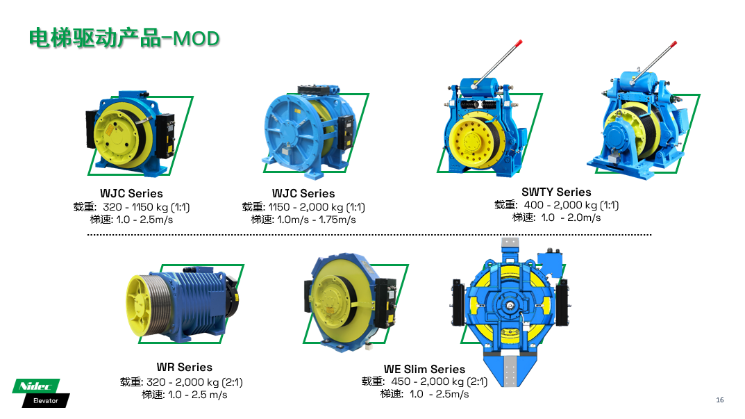 Thông qua các công nghệ R & D độc lập chuyên nghiệp và kinh nghiệm thực tế lâu dài, các thành phần thang máy NIDEC đã thiết lập sự hiện diện ở Bắc Mỹ và trên thế giới, cung cấp thiết bị thang máy cho nhiều dự án thương mại, dự án công cộng, dự án dân cư và các ứng dụng thang máy đặc biệt ở các nước phát triển ở nước ngoài, bao gồm các dự án cao cấp.