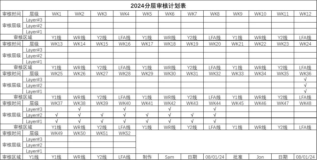 Đầu tiên, xem xét thời gian dài của sáng kiến cải tiến và mong muốn thể hiện tốt hơn hiệu quả của các cải tiến, cần phải lập kế hoạch cho các hoạt động và xây dựng lịch kiểm toán quy trình nhiều lớp. Mặc dù tương đối dễ dàng để điều chỉnh LPA cho các kỹ sư, nhưng có thể khó có thể sắp xếp thời gian để các nhà lãnh đạo cấp cao tham gia LPA. Do đó, một kế hoạch kiểm toán là rất cần thiết và phải được ban hành trước.