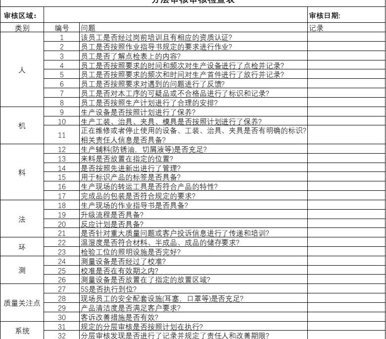 Cốt lõi để thực hiện nhanh chóng "ba tuân thủ và hai tuân thủ" nằm ở việc thực hiện. Phương pháp quản lý cụ thể cần thiết để thực hiện tại chỗ là kiểm toán quy trình phân lớp (LPA). Với LPA là công cụ chính, các cải tiến toàn diện tập trung vào các khía cạnh 5M1E (người, máy, vật liệu, phương pháp, môi trường, đo lường) đã được thực hiện trong hội thảo cài đặt. "Kiểm toán quy trình phân lớp" được thiết kế để thu hút tất cả nhân viên trong việc xem xét "ba tuân thủ và hai tuân thủ", nâng cao nhận thức chất lượng của tất cả nhân viên và giúp thiết lập một tư duy và định hướng dựa trên khung cho hành động trong các hoạt động cải tiến tiếp theo.