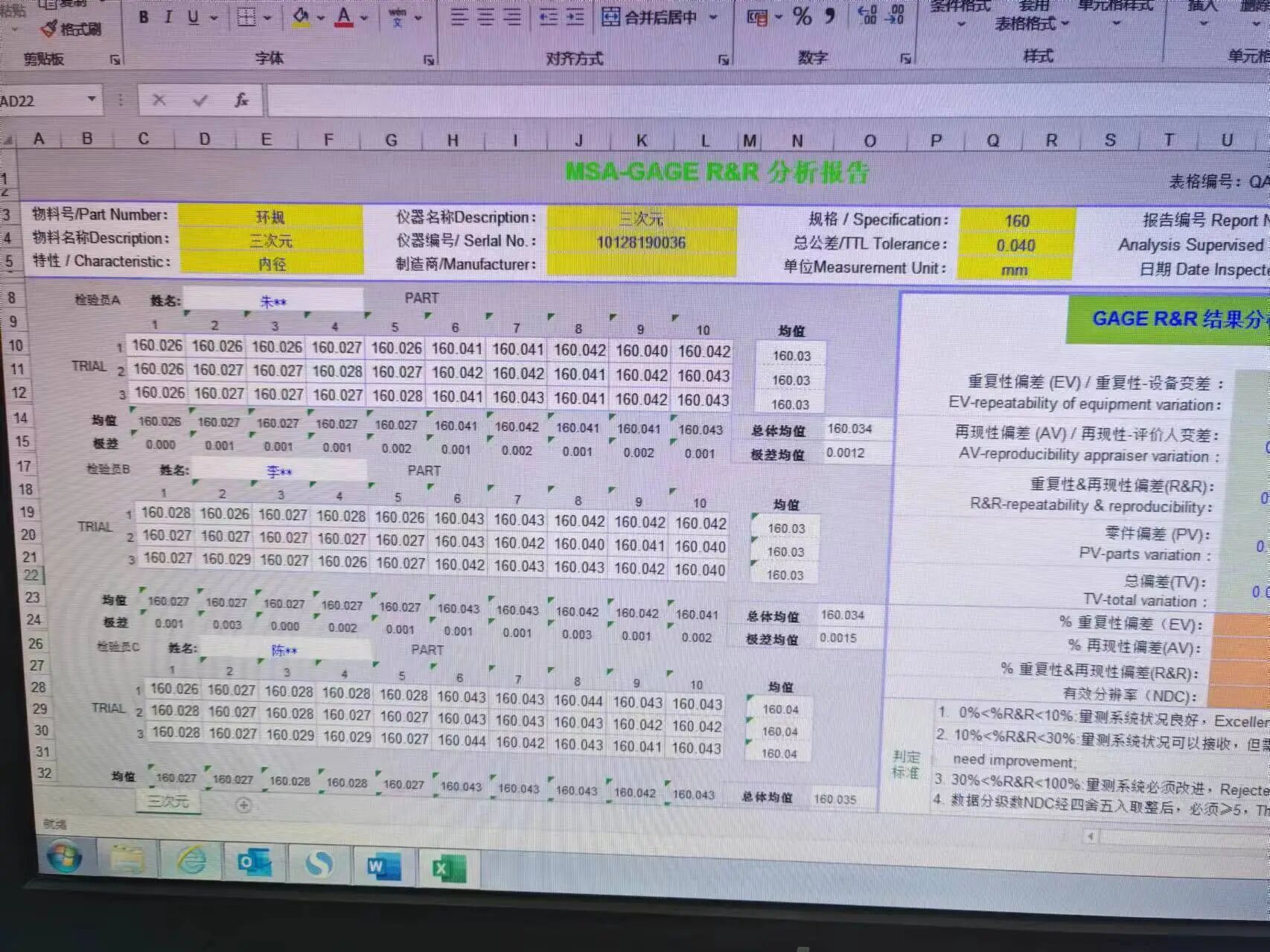 Đầu tiên, người vận hành thiết bị tiến hành kiểm tra hiệu suất từng mục khi khởi động thiết bị để đảm bảo thiết bị luôn ở trạng thái bình thường. Đồng thời, đối với các thiết bị thử nghiệm có độ chính xác cao, nhiệt độ và độ ẩm của môi trường thử nghiệm được giám sát chặt chẽ theo yêu cầu môi trường vận hành của thiết bị để đảm bảo tính chính xác và độ tin cậy của dữ liệu thử nghiệm. Công ty rất coi trọng việc phát triển nhân tài và đã xây dựng kế hoạch đào tạo toàn diện và hiệu quả để đảm bảo người vận hành thiết bị có thể nhanh chóng thành thạo các kỹ năng vận hành thiết bị. Năm 2023, Phòng Thí nghiệm Đo lường đã thực hiện 6 buổi đào tạo đặc biệt về cách sử dụng và các biện pháp phòng ngừa đối với thiết bị kiểm tra, đào tạo 35 người vận hành thiết bị xương sống cho công ty. Đối với các thiết bị quan trọng, kế hoạch phân tích R&R GAUGE chi tiết đã được xây dựng. Vào năm 2023, phân tích GAUGE R&R đã được tiến hành trên nhiều thiết bị kiểm tra chính và độ lệch thực tế thấp hơn đáng kể so với yêu cầu về độ lệch chấp nhận được của thiết bị.