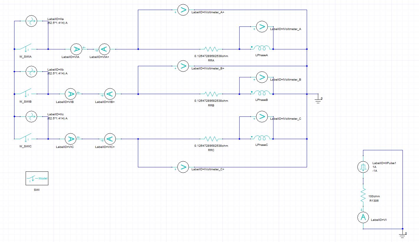 Việc thiết lập mô hình phần tử hữu hạn của máy kéo là cơ bản để phân tích điện từ và sẽ không được xây dựng ở đây. Người ta nhấn mạnh rằng các cài đặt vật liệu của động cơ phải phù hợp với việc sử dụng thực tế; Xem xét phân tích khử từ tiếp theo của nam châm vĩnh cửu, các đường cong B-H phi tuyến phải được sử dụng cho nam châm vĩnh cửu. Bài viết này tập trung vào cách thực hiện mô phỏng STARE và mô phỏng khử từ của máy kéo ở Maxwell. Việc niêm phong sao trong phần mềm được thực hiện thông qua một mạch bên ngoài, với cấu hình mạch cụ thể được hiển thị trong hình bên dưới. Các cuộn dây stator ba pha của máy kéo được ký hiệu là LPHASEA/B/C trong mạch. Để mô phỏng việc niêm phong sao ngắn mạch đột ngột của các cuộn dây ba pha, một mô-đun song song (bao gồm một nguồn hiện tại và một công tắc được điều khiển hiện tại) được kết nối nối tiếp với mỗi mạch cuộn pha. Ban đầu, công tắc được điều khiển hiện tại được mở và nguồn hiện tại ba pha cung cấp năng lượng cho các cuộn dây. Tại một thời điểm đã đặt, công tắc được điều khiển hiện tại đóng, ngắn mạch nguồn hiện tại ba pha và rút ngắn các cuộn dây ba pha, đi vào trạng thái ngao sao ngắn.